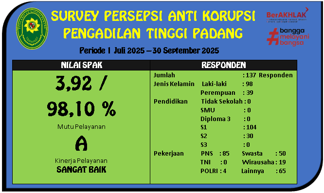 Padang, Kamis, 6 November 2025 — Pada pukul 09.00 WIB, bertempat di Ruang Sidang Utama Lantai II Pengadilan Tinggi Padang, telah dilaksanakan Rapat Bulanan Pengadilan Tinggi Padang bulan November Tahun 2025. Rapat dipimpin oleh Dr. Budi Santoso, S.H., M.H. selaku Ketua Pengadilan Tinggi Padang, didampingi oleh Dr. Joni, S.H., M.H. selaku Wakil Ketua Pengadilan Tinggi […]