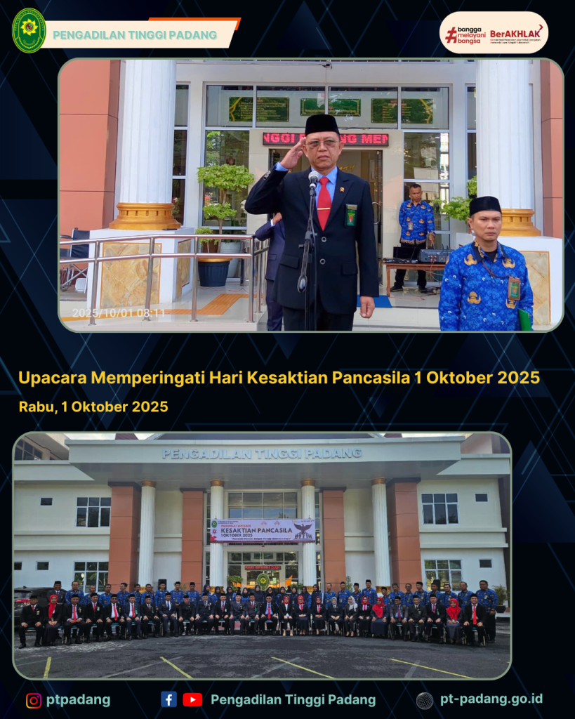 Pengadilan Tinggi Padang melaksanakan Upacara Memperingati Hari Kesaktian Pancasila 1 Oktober Tahun 2025 bertempatkan di Lapangan Pengadilan Tinggi Padang.
